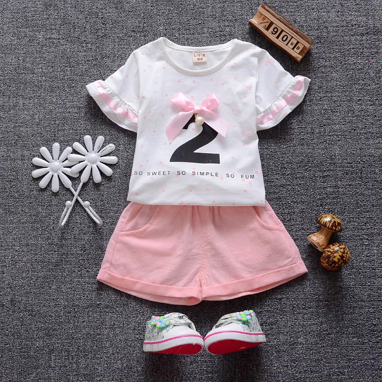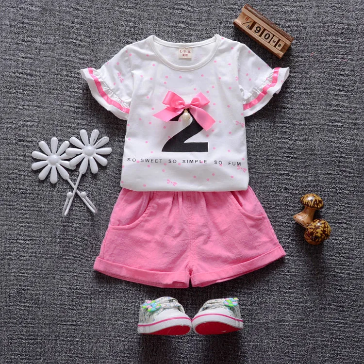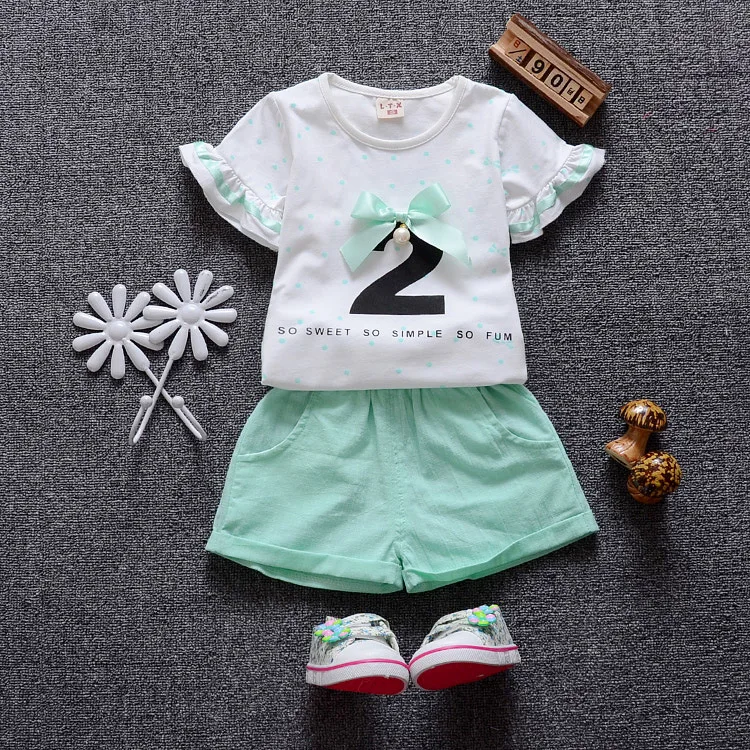 2016 Summer Style Baby Girls Clothes Cotton Baby's Sets (T-Shirts+Shorts)2pcs Baby Clothing Suits G