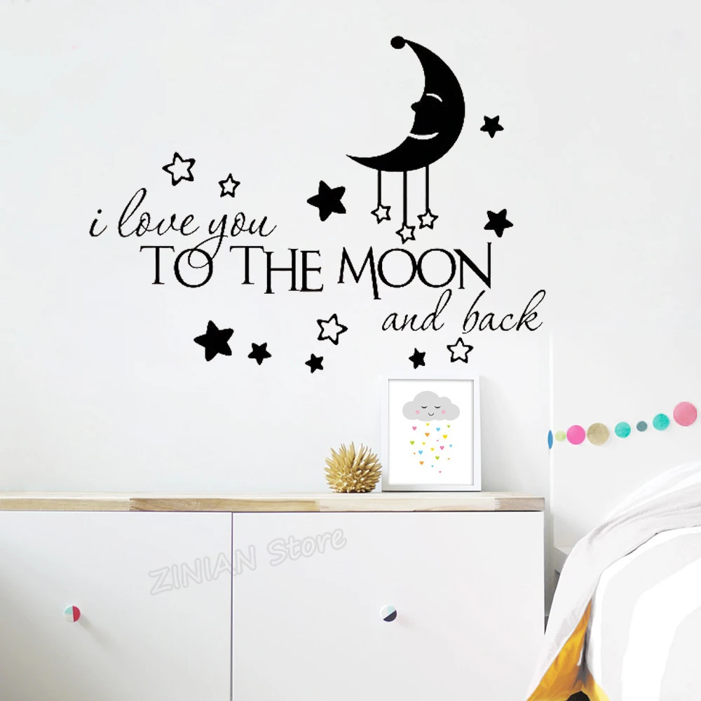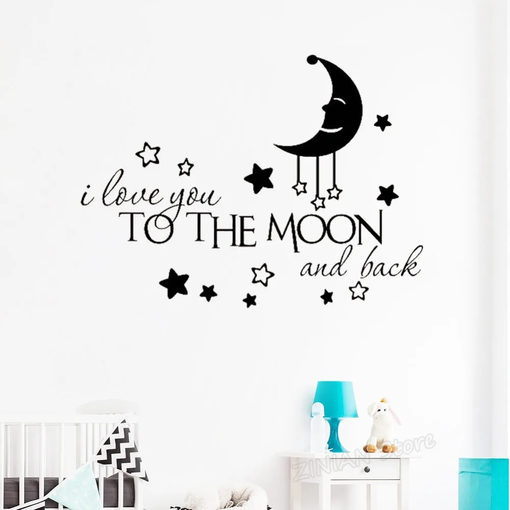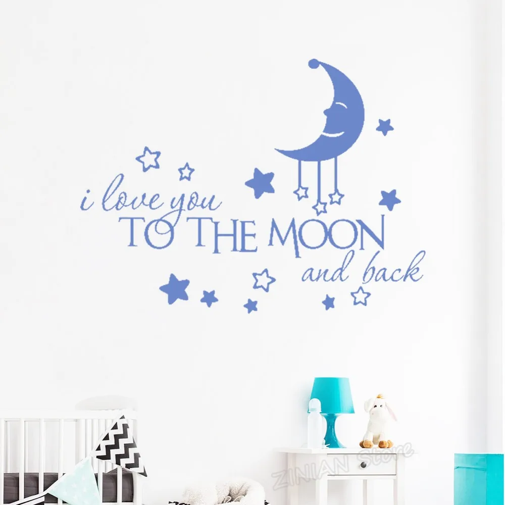Lovely Baby Nursery Wall Decal Quote I Love You To The Moon And Back Wall Decals Moon Stars Sticker