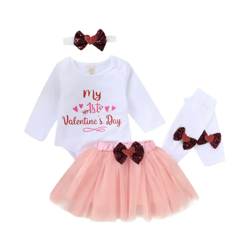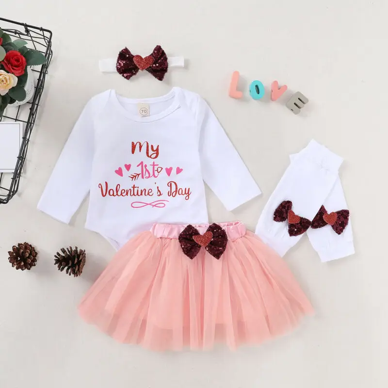 baby infant O-Neck clothing set Newborn Baby Girl Romper Tops+Tutu Skirts Dress Headband Outfit 4Pc