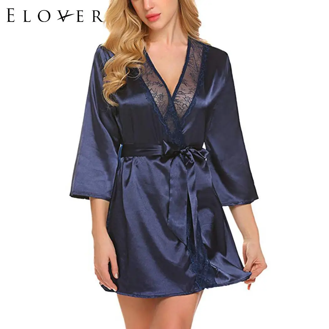 REVIEW TOP SELLER Elover Sexy Sleepwear Home Dress Solid Mini Autumn Robes Women G-String Waist Through Lace With Sex