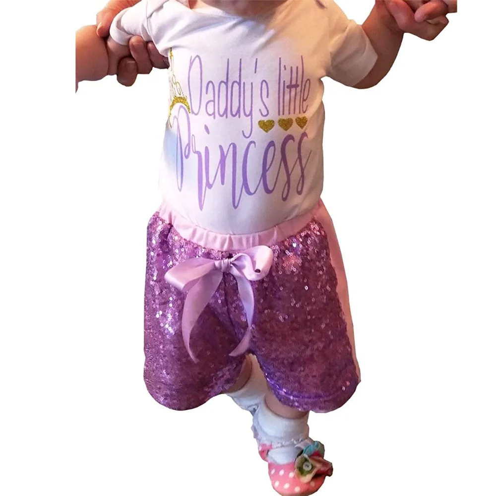 ORIGINAL Oklady 2019 Summer Baby Girls Romper+Sequins Shorts Set Daddy's Princess 3pcs Outfit Clothes