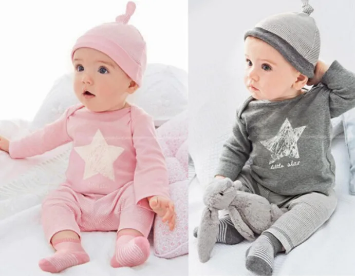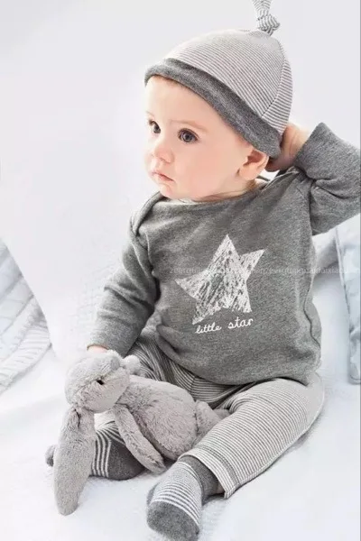 2017 new arrival girls boys clothes star pattern short sleeved cloud t shirt + pants Set. bebe newb