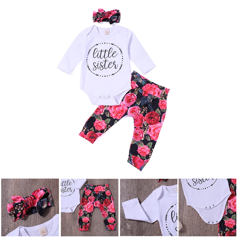 ORIGINAL Headband Spring Floral Pants Fashion Letter Printed Romper Long Sleeves Round Collar Autumn Childre