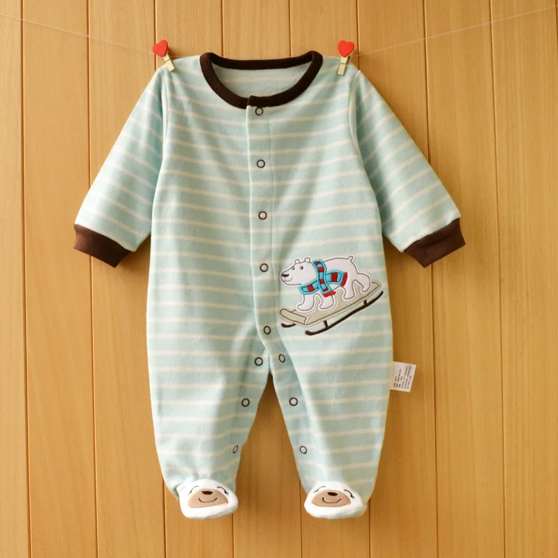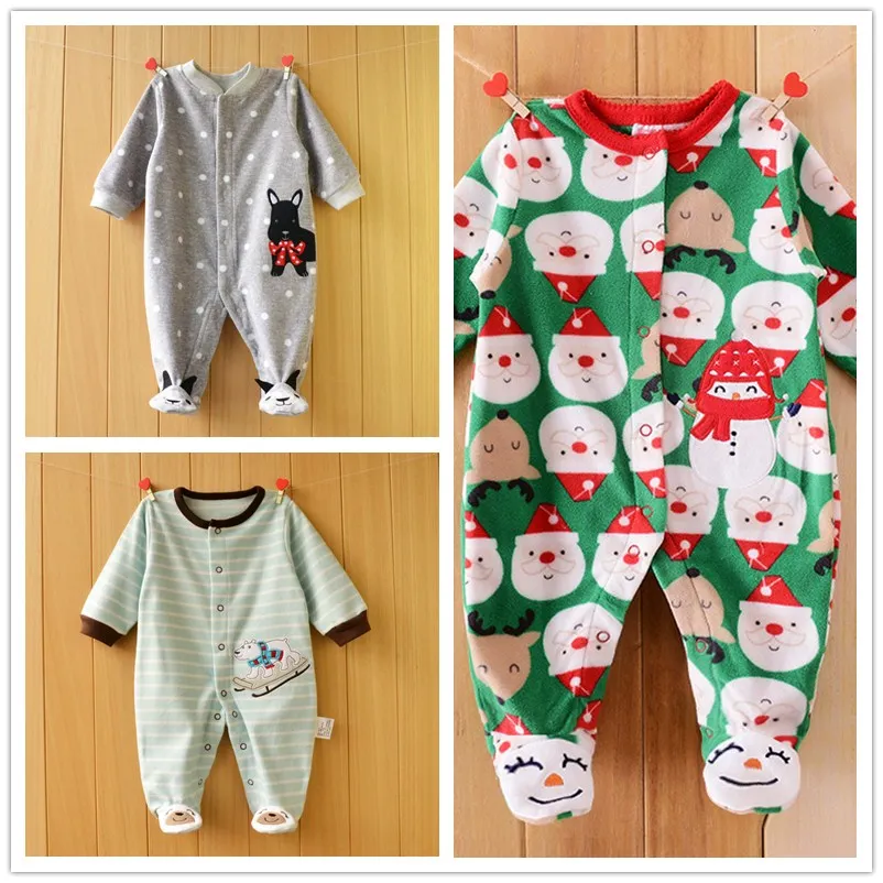BEST New Fashion Christmas Winter Baby Rompers Fleece Footed Baby Boys Clothes Infant Cartoon Baby Rompe