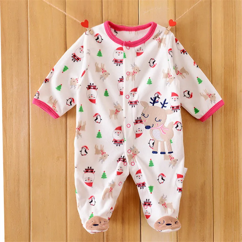 New Fashion Christmas Winter Baby Rompers Fleece Footed Baby Boys Clothes Infant Cartoon Baby Rompe
