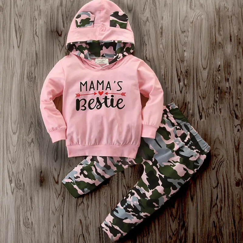 BEST Toddler Baby Girl Boy Outfit Clothes Camo Hooded Tops + Long Pants Tracksuit Set