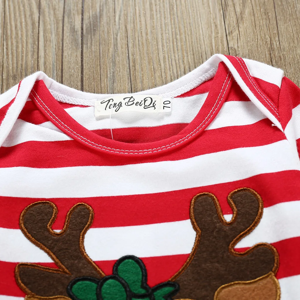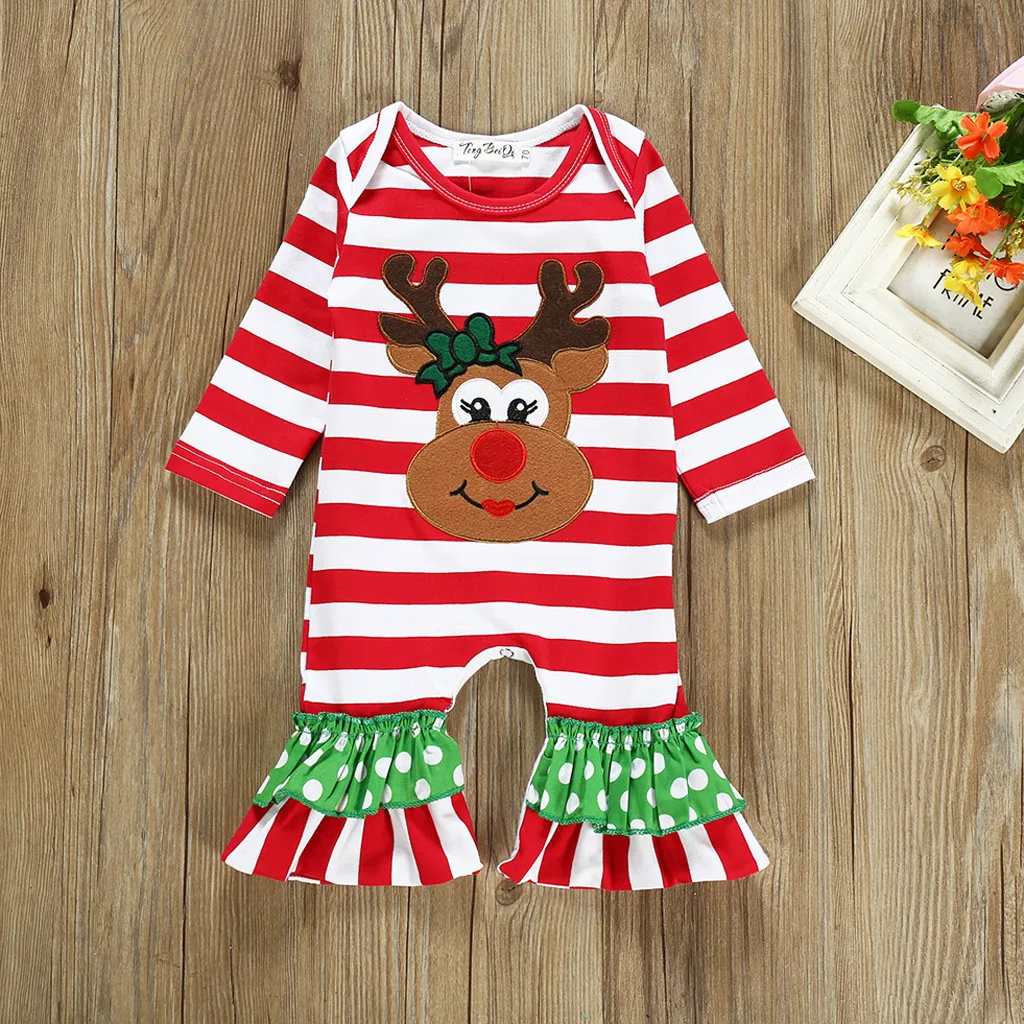 Baby Boys Girls Infant Striped Christmas Deer Romper Jumpsuit Outfits Clothing H0912
