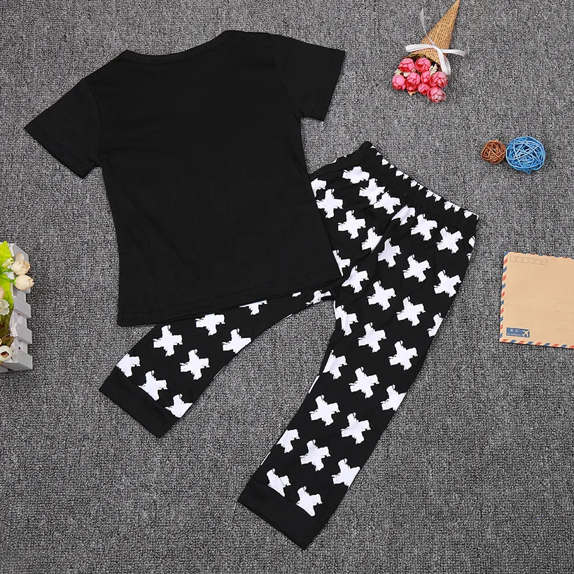 Review Top 2017 Spring summer Fox prints baby clothes T-shirt + pants 2 pcs baby clothing set 0-2 years baby b