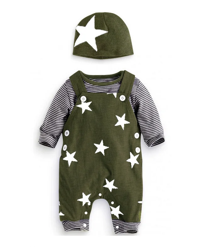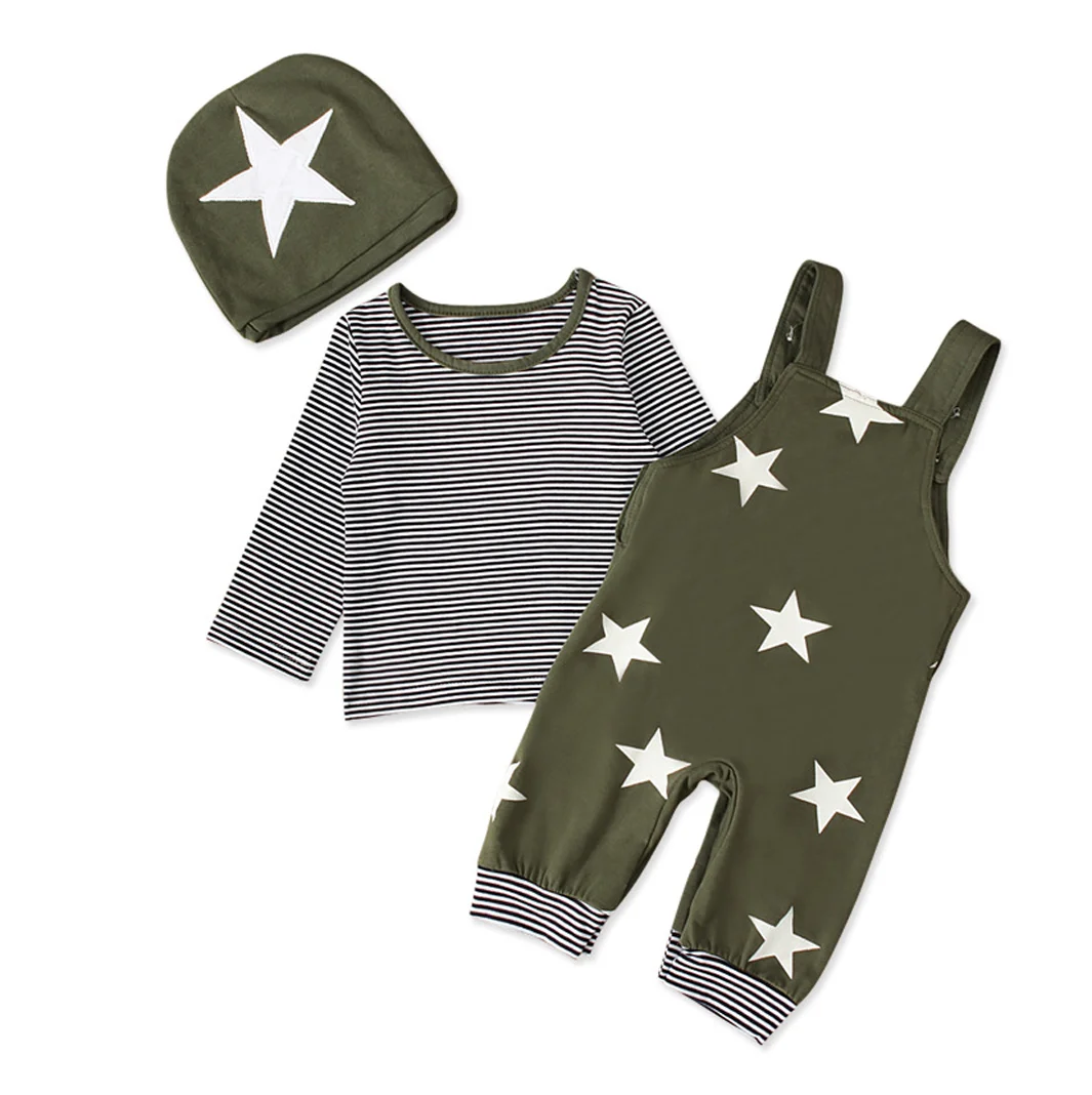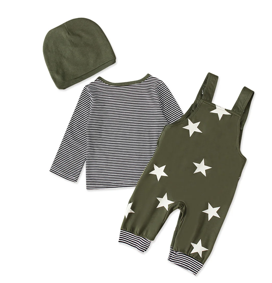 Review Top Stripe Long sleeve T shirt top and Suspender Pant with Hat set For Baby Boy