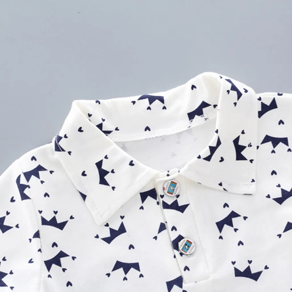 Summer Fashion Toddler Baby Clothing Toddler Baby Outfits Short Sleeve Crown Pattern Shirt Tops+Den
